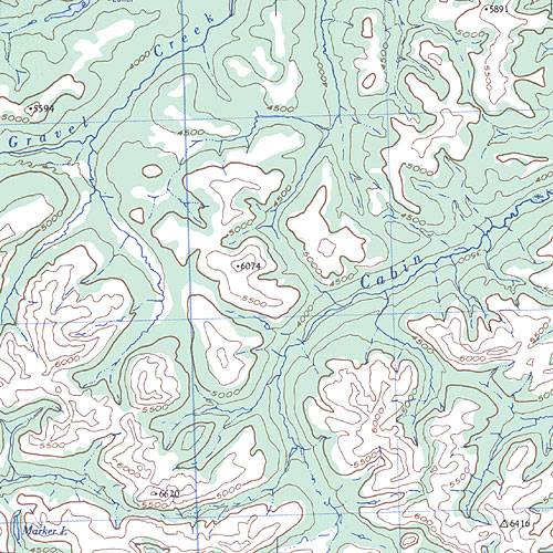 The topo map image to the left is not an exact representation. The image is based on the 1:1,000,000 scale map of the Yukon Territory. The actual 1:250,000 and 1:50,000 scale maps have additional detail not shown at the 1:1,000,000 level.