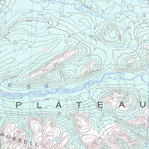 The topo map image to the left is not an exact representation. The image is based on the 1:1,000,000 scale map of the Yukon Territory. The actual 1:250,000 and 1:50,000 scale maps have additional detail not shown at the 1:1,000,000 level.