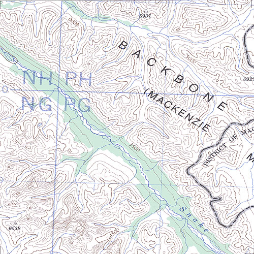 The topo map image to the left is not an exact representation. The image is based on the 1:1,000,000 scale map of the Yukon Territory. The actual 1:250,000 and 1:50,000 scale maps have additional detail not shown at the 1:1,000,000 level.