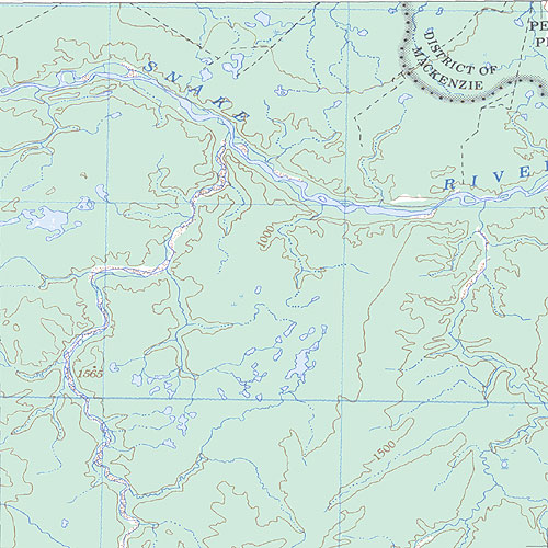 The topo map image to the left is not an exact representation. The image is based on the 1:1,000,000 scale map of the Yukon Territory. The actual 1:250,000 and 1:50,000 scale maps have additional detail not shown at the 1:1,000,000 level.