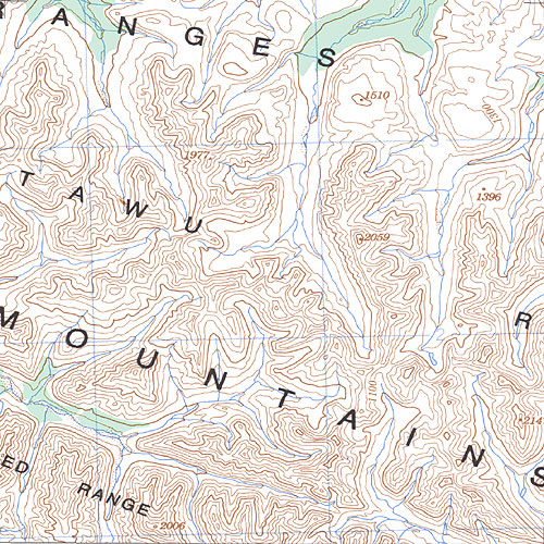 | The topo map image to the left is not an exact representation. The image is based on the 1:1,000,000 scale map of the Yukon Territory. The actual 1:250,000 and 1:50,000 scale maps have additional detail not shown at the 1:1,000,000 level. |