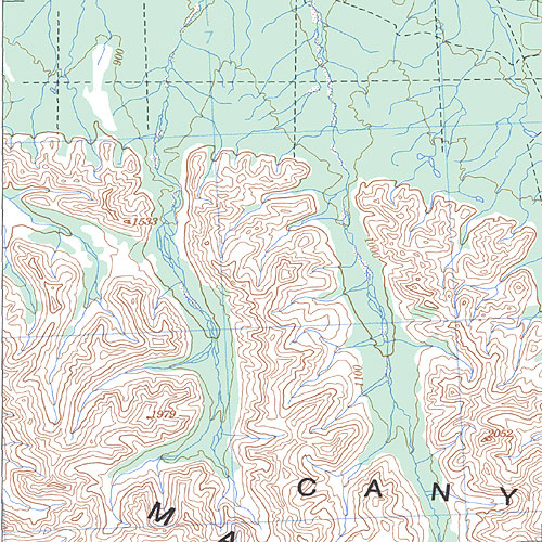 | The topo map image to the left is not an exact representation. The image is based on the 1:1,000,000 scale map of the Yukon Territory. The actual 1:250,000 and 1:50,000 scale maps have additional detail not shown at the 1:1,000,000 level. |
