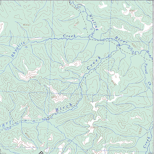The topo map image to the left is not an exact representation. The image is based on the 1:1,000,000 scale map of the Yukon Territory. The actual 1:250,000 and 1:50,000 scale maps have additional detail not shown at the 1:1,000,000 level.