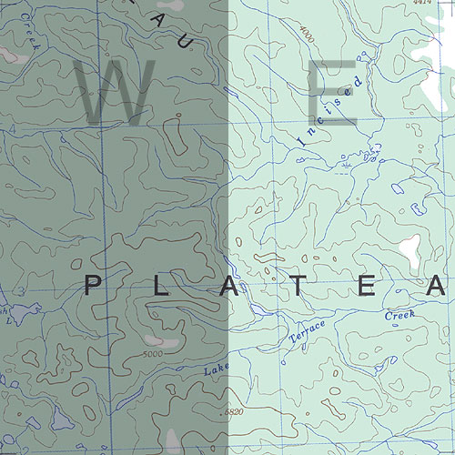 | The topo map image to the left is not an exact representation. The image is based on the 1:1,000,000 scale map of the Yukon Territory. The actual 1:250,000 and 1:50,000 scale maps have additional detail not shown at the 1:1,000,000 level. |