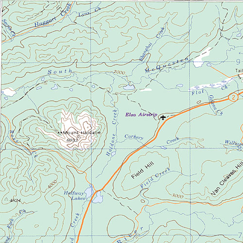 The topo map image to the left is not an exact representation. The image is based on the 1:1,000,000 scale map of the Yukon Territory. The actual 1:250,000 and 1:50,000 scale maps have additional detail not shown at the 1:1,000,000 level.
