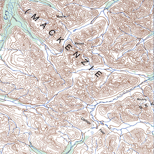 The topo map image to the left is not an exact representation. The image is based on the 1:1,000,000 scale map of the Yukon Territory. The actual 1:250,000 and 1:50,000 scale maps have additional detail not shown at the 1:1,000,000 level.