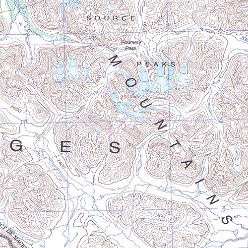 The topo map image to the left is not an exact representation. The image is based on the 1:1,000,000 scale map of the Yukon Territory. The actual 1:250,000 and 1:50,000 scale maps have additional detail not shown at the 1:1,000,000 level.