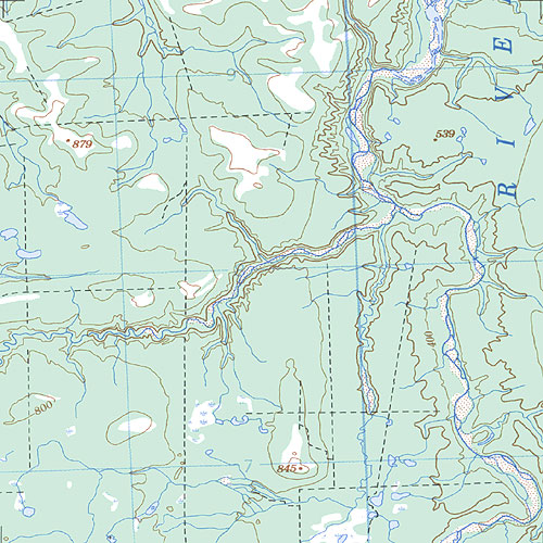 | The topo map image to the left is not an exact representation. The image is based on the 1:1,000,000 scale map of the Yukon Territory. The actual 1:250,000 and 1:50,000 scale maps have additional detail not shown at the 1:1,000,000 level. |