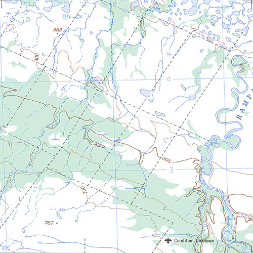| The topo map image to the left is not an exact representation. The image is based on the 1:1,000,000 scale map of the Yukon Territory. The actual 1:250,000 and 1:50,000 scale maps have additional detail not shown at the 1:1,000,000 level. |
