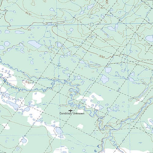 | The topo map image to the left is not an exact representation. The image is based on the 1:1,000,000 scale map of the Yukon Territory. The actual 1:250,000 and 1:50,000 scale maps have additional detail not shown at the 1:1,000,000 level. |