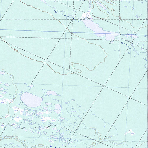 The topo map image to the left is not an exact representation. The image is based on the 1:1,000,000 scale map of the Yukon Territory. The actual 1:250,000 and 1:50,000 scale maps have additional detail not shown at the 1:1,000,000 level.