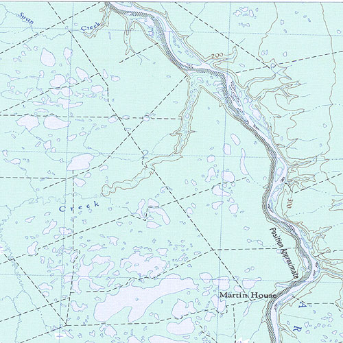 The topo map image to the left is not an exact representation. The image is based on the 1:1,000,000 scale map of the Yukon Territory. The actual 1:250,000 and 1:50,000 scale maps have additional detail not shown at the 1:1,000,000 level.