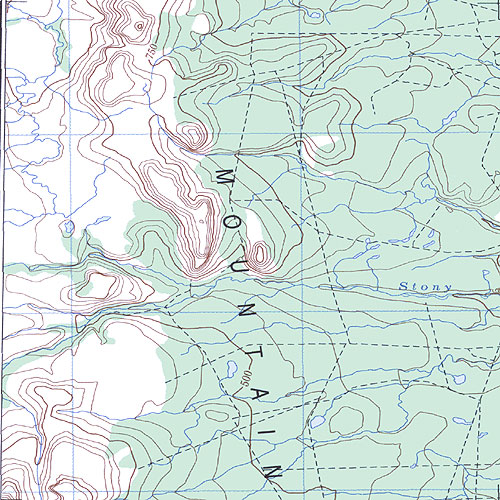 The topo map image to the left is not an exact representation. The image is based on the 1:1,000,000 scale map of the Yukon Territory. The actual 1:250,000 and 1:50,000 scale maps have additional detail not shown at the 1:1,000,000 level.
