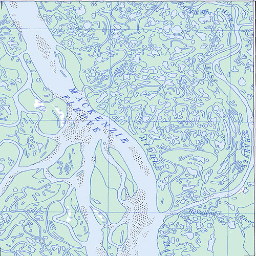 The topo map image to the left is not an exact representation. The image is based on the 1:1,000,000 scale map of the Yukon Territory. The actual 1:250,000 and 1:50,000 scale maps have additional detail not shown at the 1:1,000,000 level.