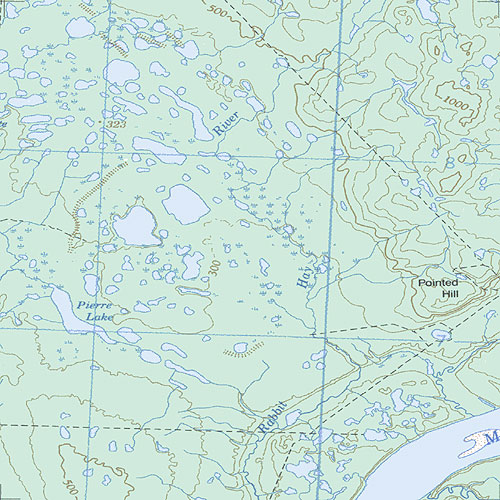 | The topo map image to the left is not an exact representation. The image is based on the 1:1,000,000 scale map of the Yukon Territory. The actual 1:250,000 and 1:50,000 scale maps have additional detail not shown at the 1:1,000,000 level. |
