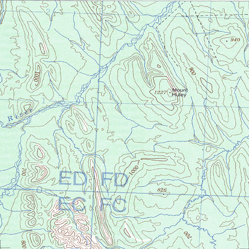 The topo map image to the left is not an exact representation. The image is based on the 1:1,000,000 scale map of the Yukon Territory. The actual 1:250,000 and 1:50,000 scale maps have additional detail not shown at the 1:1,000,000 level.