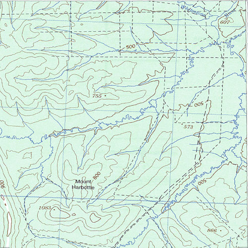 The topo map image to the left is not an exact representation. The image is based on the 1:1,000,000 scale map of the Yukon Territory. The actual 1:250,000 and 1:50,000 scale maps have additional detail not shown at the 1:1,000,000 level.