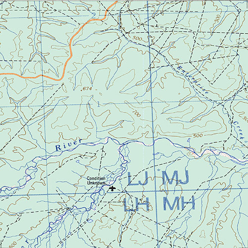 The topo map image to the left is not an exact representation. The image is based on the 1:1,000,000 scale map of the Yukon Territory. The actual 1:250,000 and 1:50,000 scale maps have additional detail not shown at the 1:1,000,000 level.