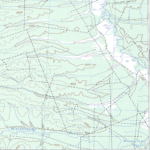 The topo map image to the left is not an exact representation. The image is based on the 1:1,000,000 scale map of the Yukon Territory. The actual 1:250,000 and 1:50,000 scale maps have additional detail not shown at the 1:1,000,000 level.