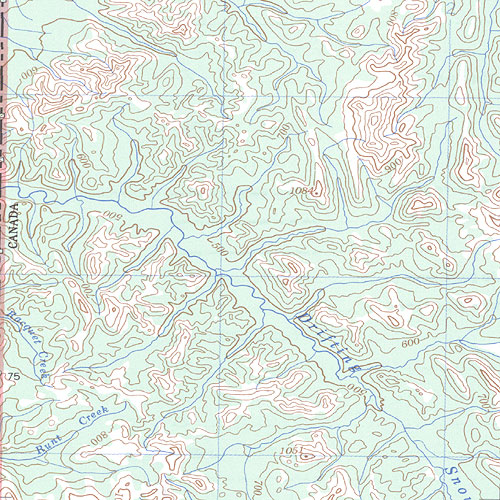 The topo map image to the left is not an exact representation. The image is based on the 1:1,000,000 scale map of the Yukon Territory. The actual 1:250,000 and 1:50,000 scale maps have additional detail not shown at the 1:1,000,000 level.