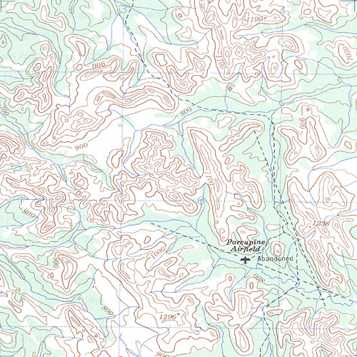 | The topo map image to the left is not an exact representation. The image is based on the 1:1,000,000 scale map of the Yukon Territory. The actual 1:250,000 and 1:50,000 scale maps have additional detail not shown at the 1:1,000,000 level. |