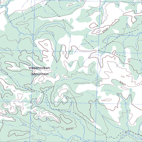 | The topo map image to the left is not an exact representation. The image is based on the 1:1,000,000 scale map of the Yukon Territory. The actual 1:250,000 and 1:50,000 scale maps have additional detail not shown at the 1:1,000,000 level. |