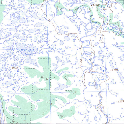 The topo map image to the left is not an exact representation. The image is based on the 1:1,000,000 scale map of the Yukon Territory. The actual 1:250,000 and 1:50,000 scale maps have additional detail not shown at the 1:1,000,000 level.