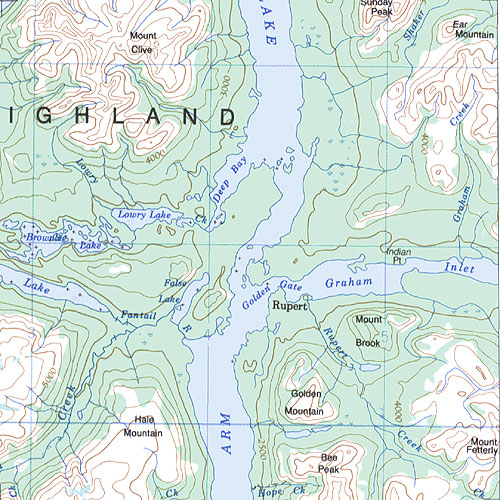 The topo map image to the left is not an exact representation. The image is based on the 1:1,000,000 scale map of the Yukon Territory. The actual 1:250,000 and 1:50,000 scale maps have additional detail not shown at the 1:1,000,000 level.