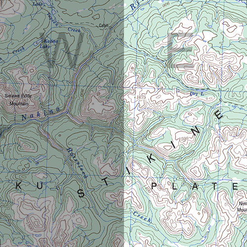 | The topo map image to the left is not an exact representation. The image is based on the 1:1,000,000 scale map of the Yukon Territory. The actual 1:250,000 and 1:50,000 scale maps have additional detail not shown at the 1:1,000,000 level. |