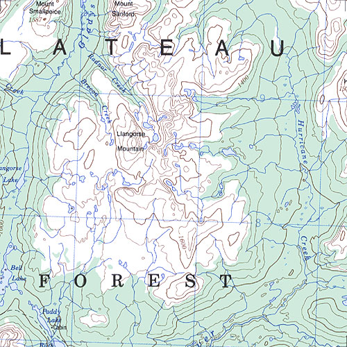 The topo map image to the left is not an exact representation. The image is based on the 1:1,000,000 scale map of the Yukon Territory. The actual 1:250,000 and 1:50,000 scale maps have additional detail not shown at the 1:1,000,000 level.