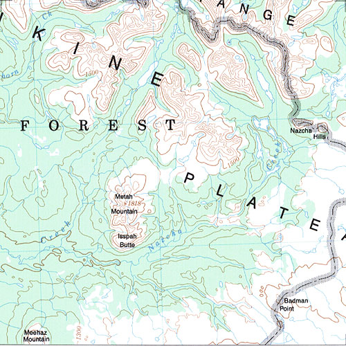 The topo map image to the left is not an exact representation. The image is based on the 1:1,000,000 scale map of the Yukon Territory. The actual 1:250,000 and 1:50,000 scale maps have additional detail not shown at the 1:1,000,000 level.