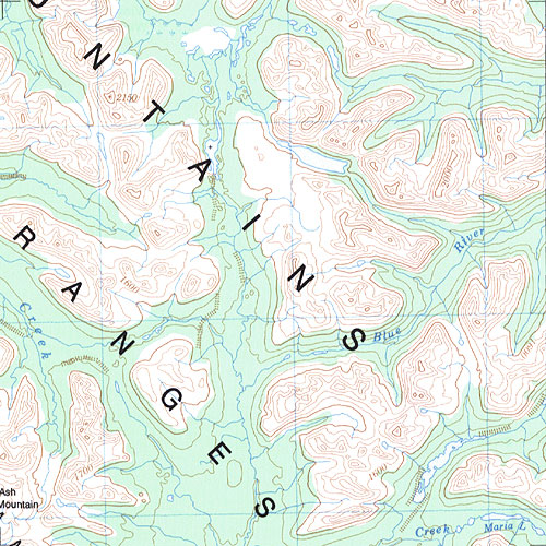 The topo map image to the left is not an exact representation. The image is based on the 1:1,000,000 scale map of the Yukon Territory. The actual 1:250,000 and 1:50,000 scale maps have additional detail not shown at the 1:1,000,000 level.