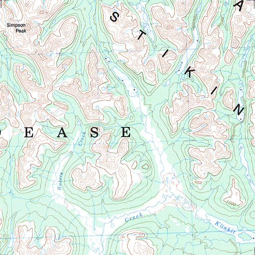 The topo map image to the left is not an exact representation. The image is based on the 1:1,000,000 scale map of the Yukon Territory. The actual 1:250,000 and 1:50,000 scale maps have additional detail not shown at the 1:1,000,000 level.
