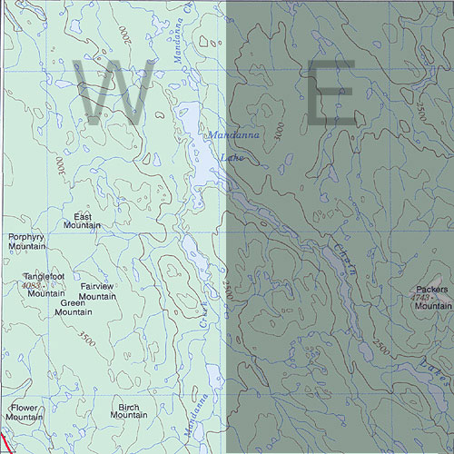This map shows just the western portion of the NTS 105E13 map area. |
