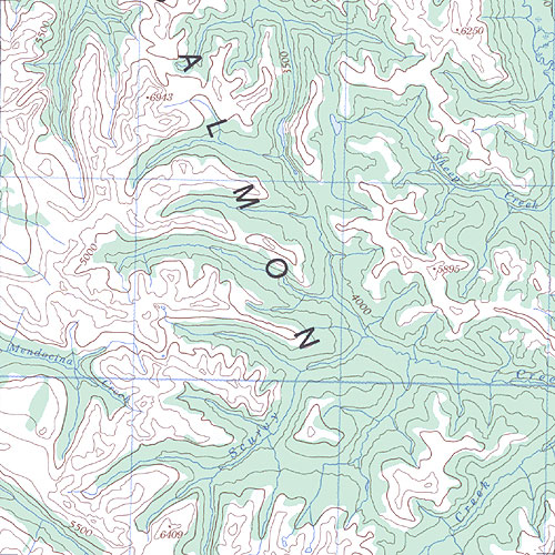 The topo map image to the left is not an exact representation. The image is based on the 1:1,000,000 scale map of the Yukon Territory. The actual 1:250,000 and 1:50,000 scale maps have additional detail not shown at the 1:1,000,000 level.