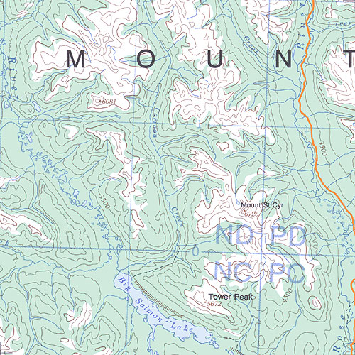 The topo map image to the left is not an exact representation. The image is based on the 1:1,000,000 scale map of the Yukon Territory. The actual 1:250,000 and 1:50,000 scale maps have additional detail not shown at the 1:1,000,000 level.