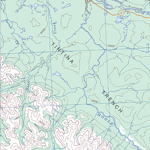 The topo map image to the left is not an exact representation. The image is based on the 1:1,000,000 scale map of the Yukon Territory. The actual 1:250,000 and 1:50,000 scale maps have additional detail not shown at the 1:1,000,000 level.