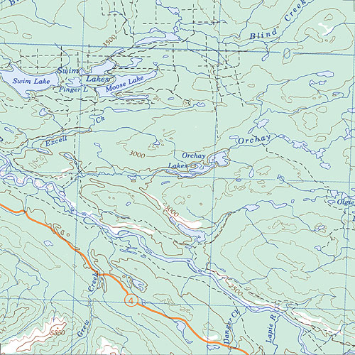 The topo map image to the left is not an exact representation. The image is based on the 1:1,000,000 scale map of the Yukon Territory. The actual 1:250,000 and 1:50,000 scale maps have additional detail not shown at the 1:1,000,000 level.