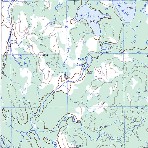 The topo map image to the left is not an exact representation. The image is based on the 1:1,000,000 scale map of the Yukon Territory. The actual 1:250,000 and 1:50,000 scale maps have additional detail not shown at the 1:1,000,000 level.