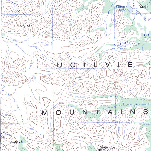 The topo map image to the left is not an exact representation. The image is based on the 1:1,000,000 scale map of the Yukon Territory. The actual 1:250,000 and 1:50,000 scale maps have additional detail not shown at the 1:1,000,000 level.