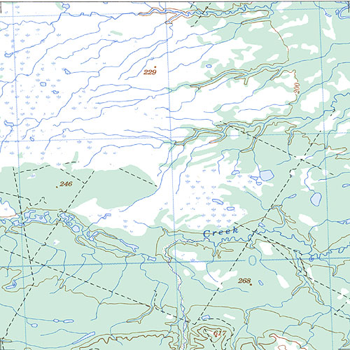 | The topo map image to the left is not an exact representation. The image is based on the 1:1,000,000 scale map of the Yukon Territory. The actual 1:250,000 and 1:50,000 scale maps have additional detail not shown at the 1:1,000,000 level. |