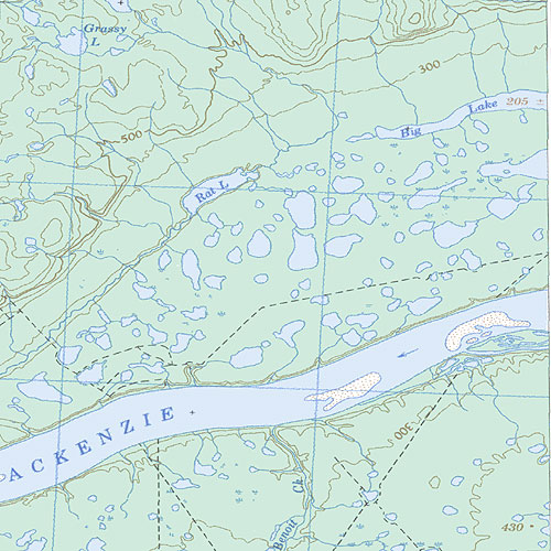 | The topo map image to the left is not an exact representation. The image is based on the 1:1,000,000 scale map of the Yukon Territory. The actual 1:250,000 and 1:50,000 scale maps have additional detail not shown at the 1:1,000,000 level. |