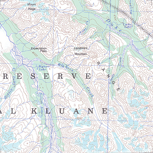 The topo map image to the left is not an exact representation. The image is based on the 1:1,000,000 scale map of the Yukon Territory. The actual 1:250,000 and 1:50,000 scale maps have additional detail not shown at the 1:1,000,000 level.