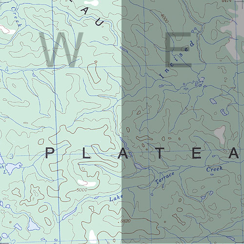 | The topo map image to the left is not an exact representation. The image is based on the 1:1,000,000 scale map of the Yukon Territory. The actual 1:250,000 and 1:50,000 scale maps have additional detail not shown at the 1:1,000,000 level. |