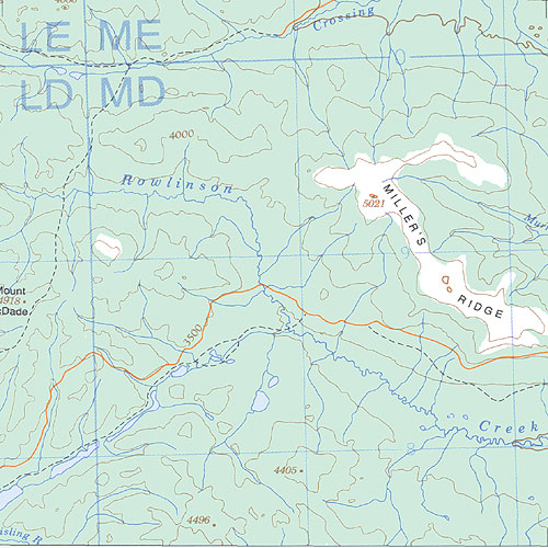 The topo map image to the left is not an exact representation. The image is based on the 1:1,000,000 scale map of the Yukon Territory. The actual 1:250,000 and 1:50,000 scale maps have additional detail not shown at the 1:1,000,000 level.