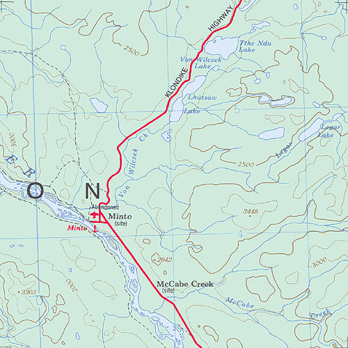 The topo map image to the left is not an exact representation. The image is based on the 1:1,000,000 scale map of the Yukon Territory. The actual 1:250,000 and 1:50,000 scale maps have additional detail not shown at the 1:1,000,000 level.