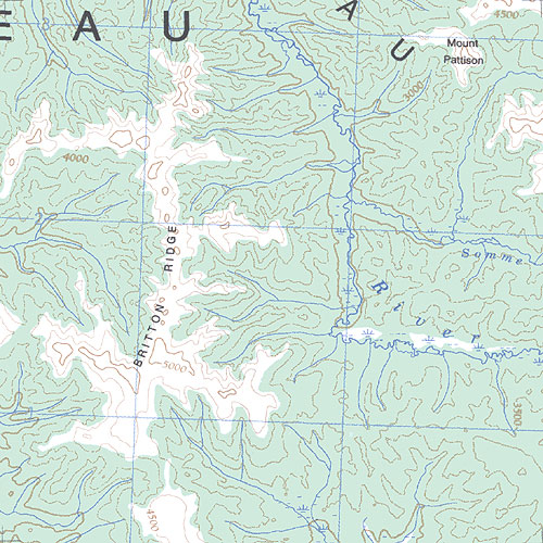 The topo map image to the left is not an exact representation. The image is based on the 1:1,000,000 scale map of the Yukon Territory. The actual 1:250,000 and 1:50,000 scale maps have additional detail not shown at the 1:1,000,000 level.