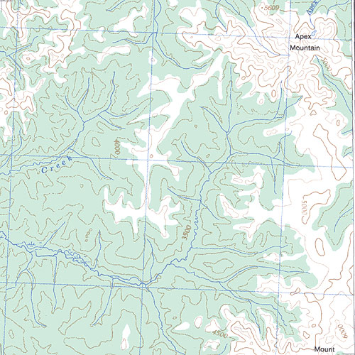 The topo map image to the left is not an exact representation. The image is based on the 1:1,000,000 scale map of the Yukon Territory. The actual 1:250,000 and 1:50,000 scale maps have additional detail not shown at the 1:1,000,000 level.