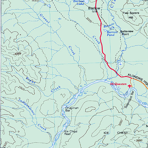 The topo map image to the left is not an exact representation. The image is based on the 1:1,000,000 scale map of the Yukon Territory. The actual 1:250,000 and 1:50,000 scale maps have additional detail not shown at the 1:1,000,000 level.