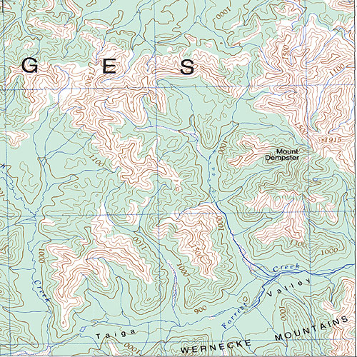The topo map image to the left is not an exact representation. The image is based on the 1:1,000,000 scale map of the Yukon Territory. The actual 1:250,000 and 1:50,000 scale maps have additional detail not shown at the 1:1,000,000 level.